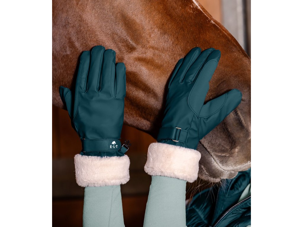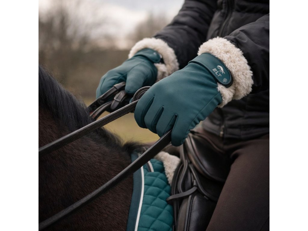 Bielastický termo materiál je odolný proti větru i vodě, takže vás ochrání i v nepříznivém počasí. Hřejivá podšívka z umělé kožešiny zajistí, že vaše ruce zůstanou v teple, a přitom budete mít perfektní kontakt s otěžemi. Zapínání na suchý zip drží rukavice pevně na místě a reflexní logo na zapínání zvyšuje vaši viditelnost za šera.