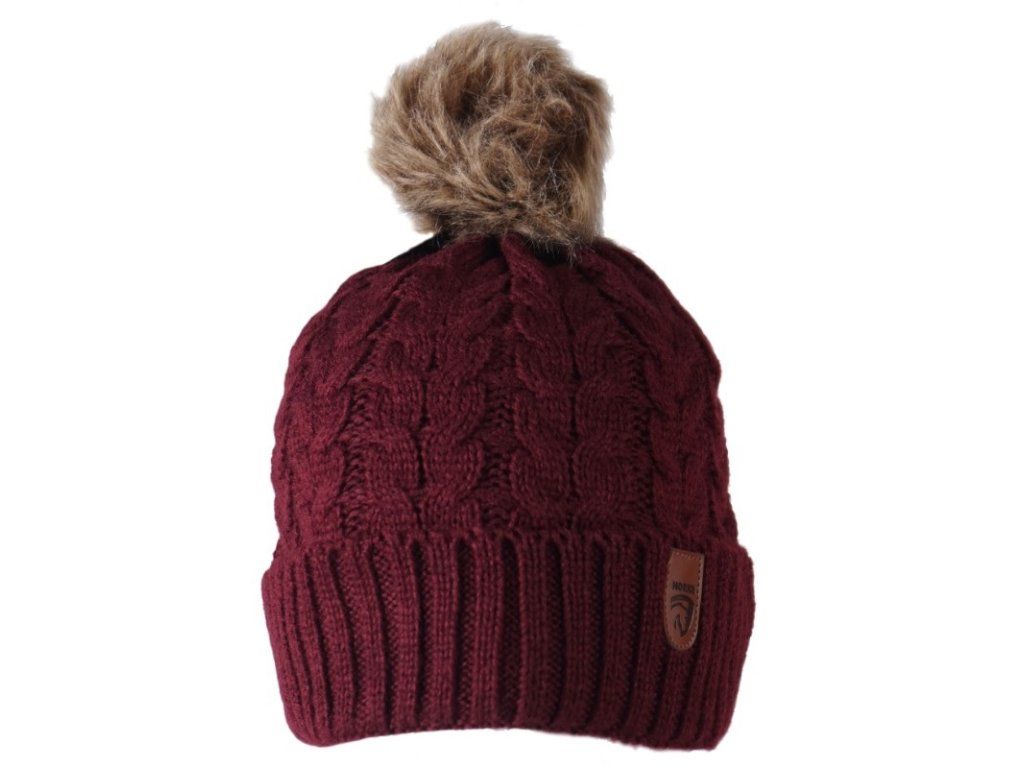 Zimní čepice z úpletu, podložená fleecem, s chlupatou bambulkou. Materiál 100% akrylic, jedna velikost