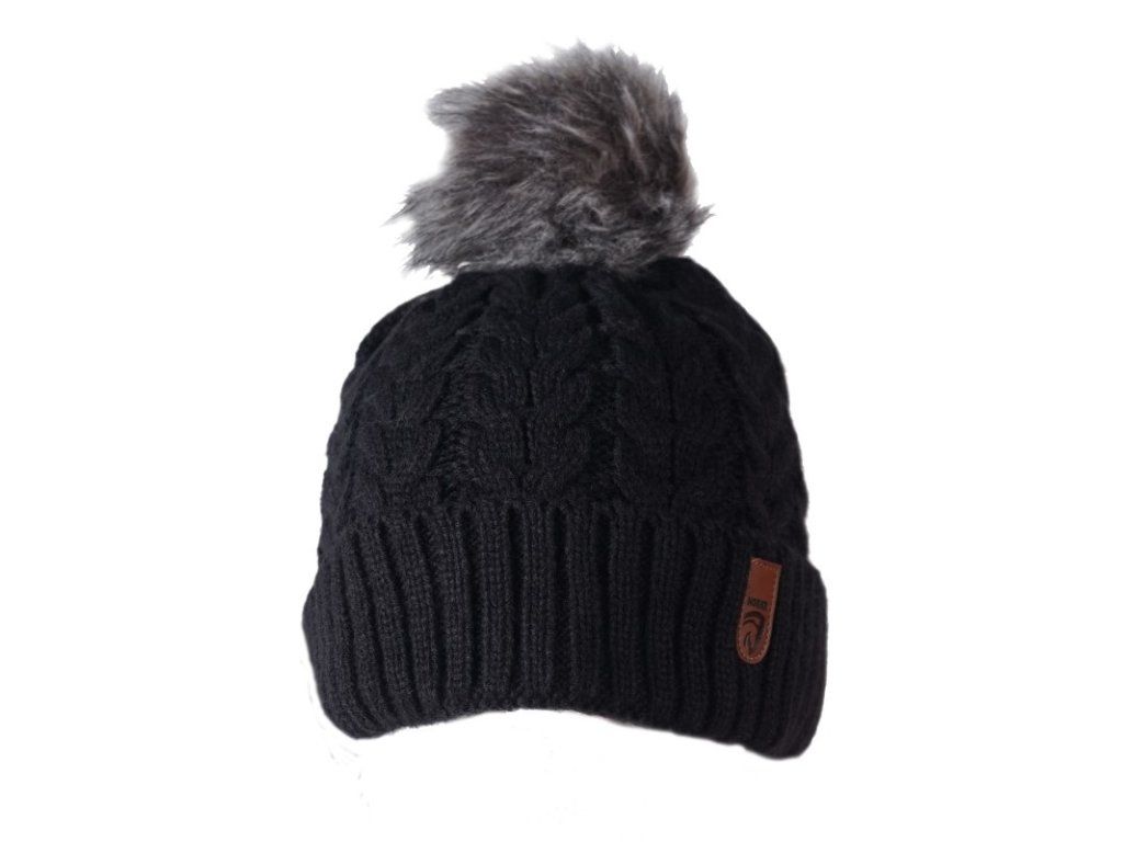 Zimní čepice z úpletu, podložená fleecem, s chlupatou bambulkou, jedna velikost