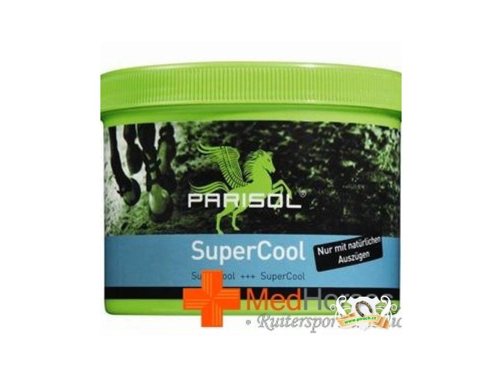Chladící gel pro koně Parisol SuperCool, s vybranými bylinnými extrakty, chladivý a uvolňující účinky přírodních látek, intenzivně chladí a reaktivuje svalstvo, pro péči o svaly a šlachy koní, obsahuje tymian, levanduli, výtažek arniky a mentolu, 500 ml