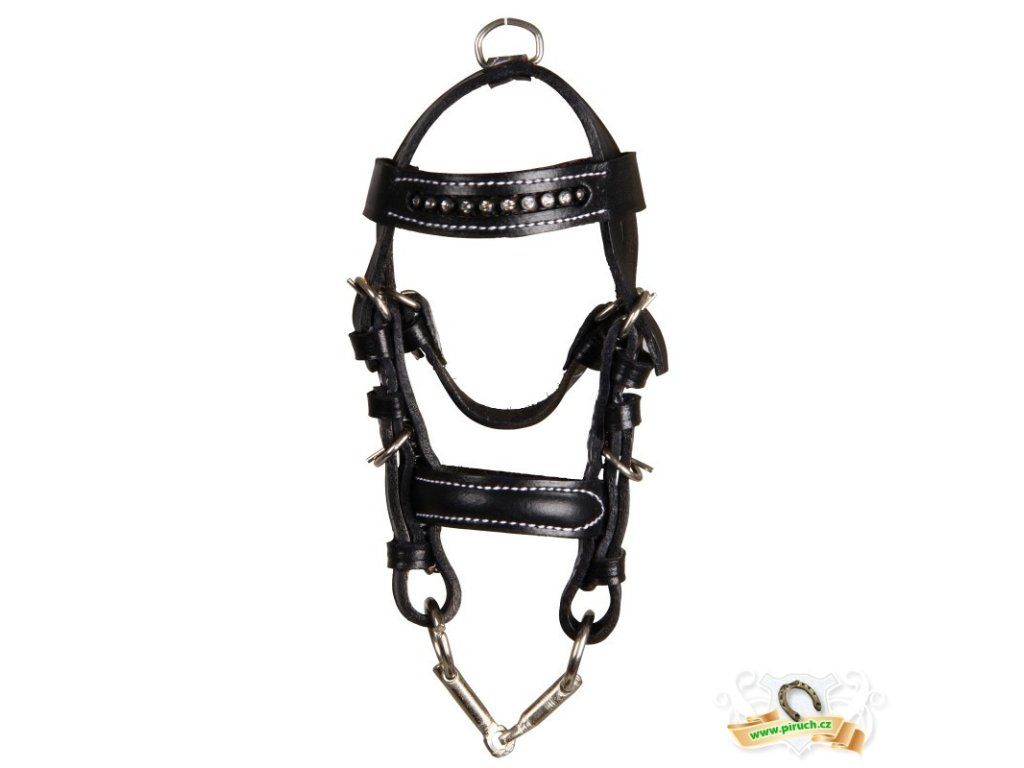 kožená, 17 cm dlouhá, černá, s kamínky na čelence