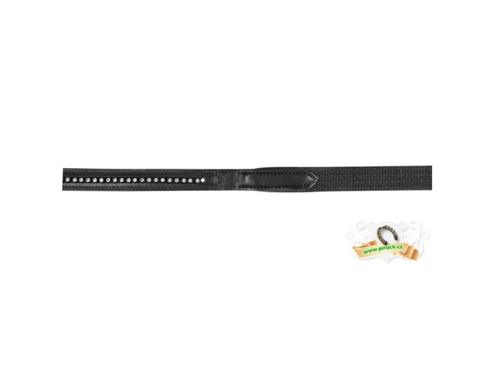Bavlněné otěže se zarážkami, na kůži zdobené kamínky, výborně se hodí k uzdečkám Diamant, nebo Silvestar, 19 mm široké, barva černá