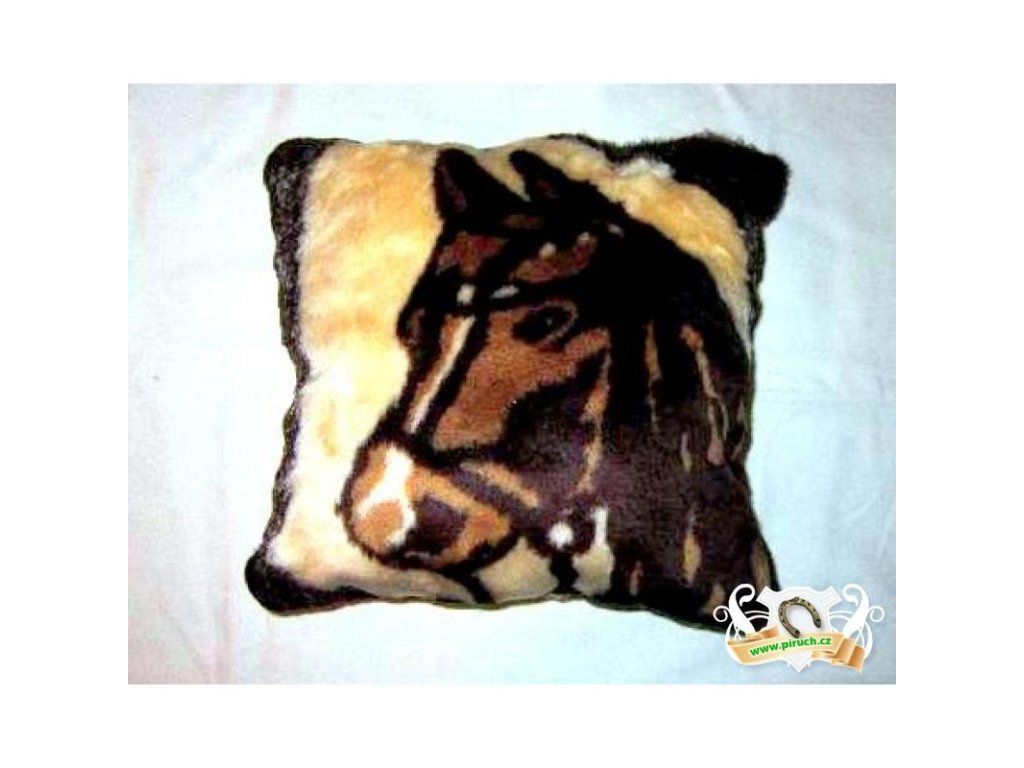 Polšářek s motivem koně ze syntetické kožešiny, velmi příjemný na dotek, barva hnědo-béžová