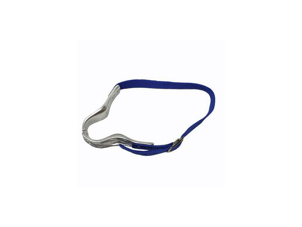 Hliníkový se silným nylonovým páskem na zapínání, zpevněné dírky na pásce, modrý popruh, polská výroba