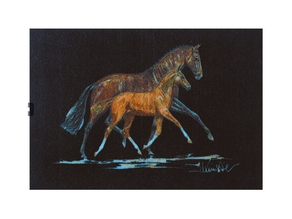 Nádherná rohožka s uměleckou grafikou klisny s hříbětem od uznávaného autora Jana Künstera. Originální a praktický dárek pro každého milovníka koní, který zkrášlí vstup do vašeho domova či stáje.