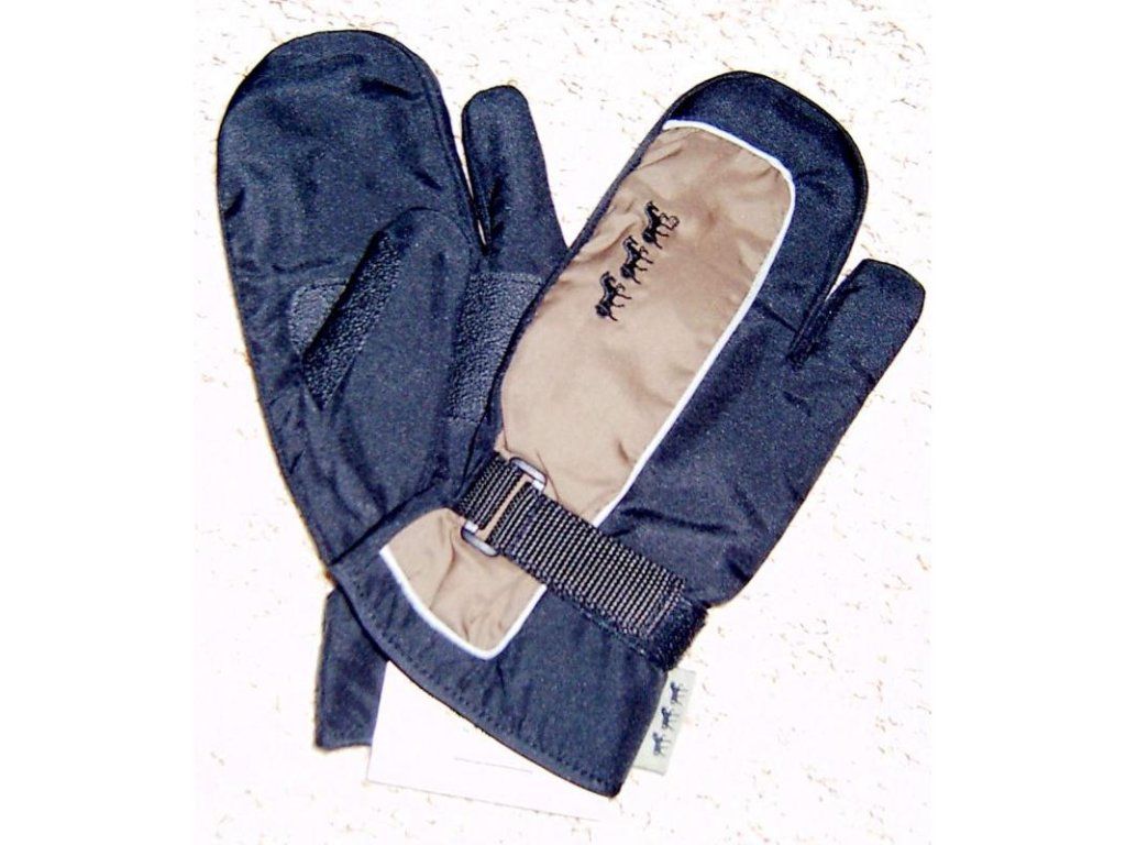 vtipné zimní jezdecké palčáky, velikost S, tmavě modrá-světle hnědé