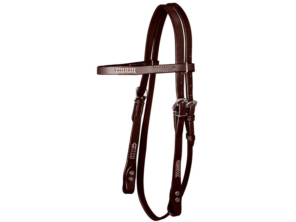 Kvalitní kožená uzdečka zdobená přírodním Rowhidem na čelence a lícnicích, obě lícnice nastavitelné, upnutí udidla pomocí šroubů. Uzdečka dodávána bez otěží. Barva tmavě hnědá. Jedna velikost.Buďte první, kdo napíše příspěvek k této položce.